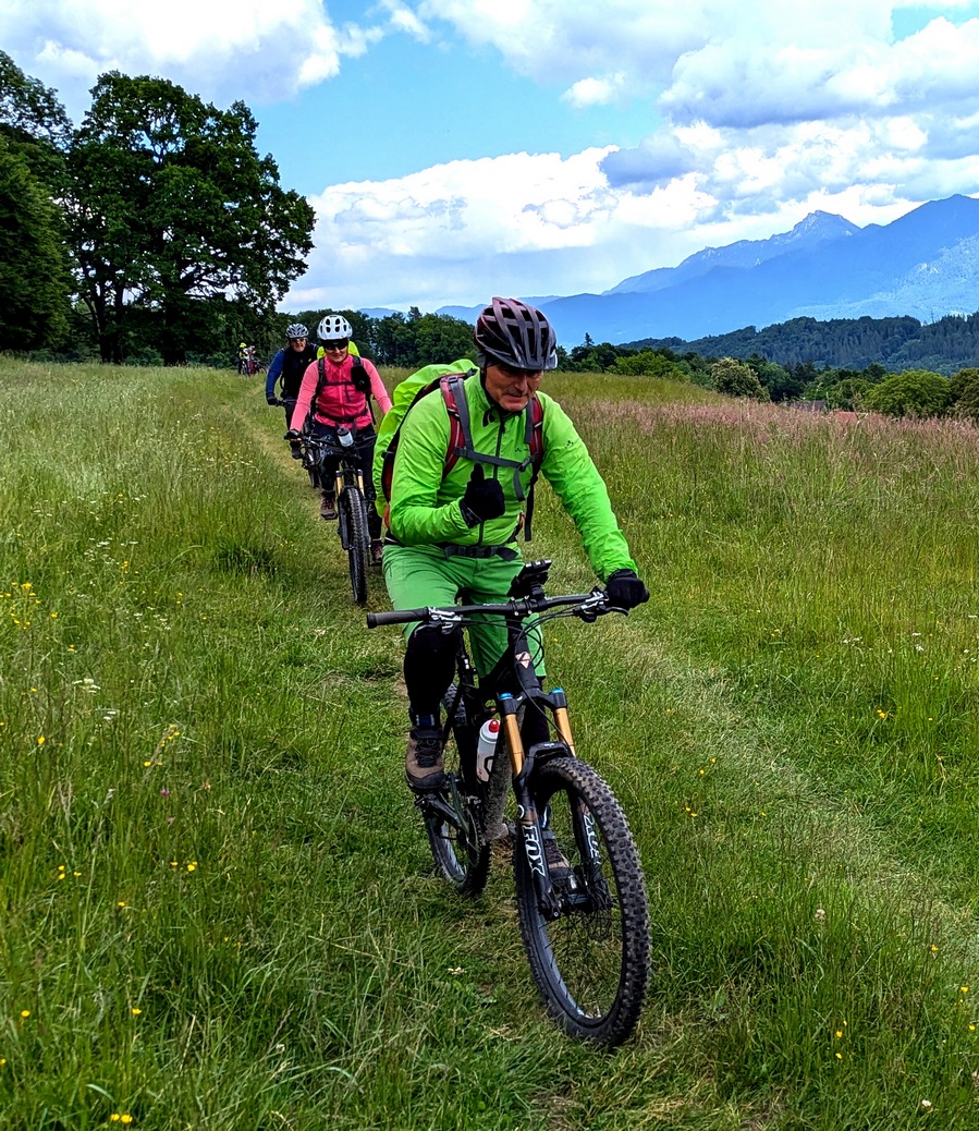 Marco und Gerhard unterstützten Ferdi ebenfalls bei der Tourenplanung und es war sogar immer wieder Zeit für kleine Fahrtechniktipps. Wolfgang hielt die digitalen Fäden im Hintergrund zusammen und war ein unermüdlicher Helfer an der Kochfront.
