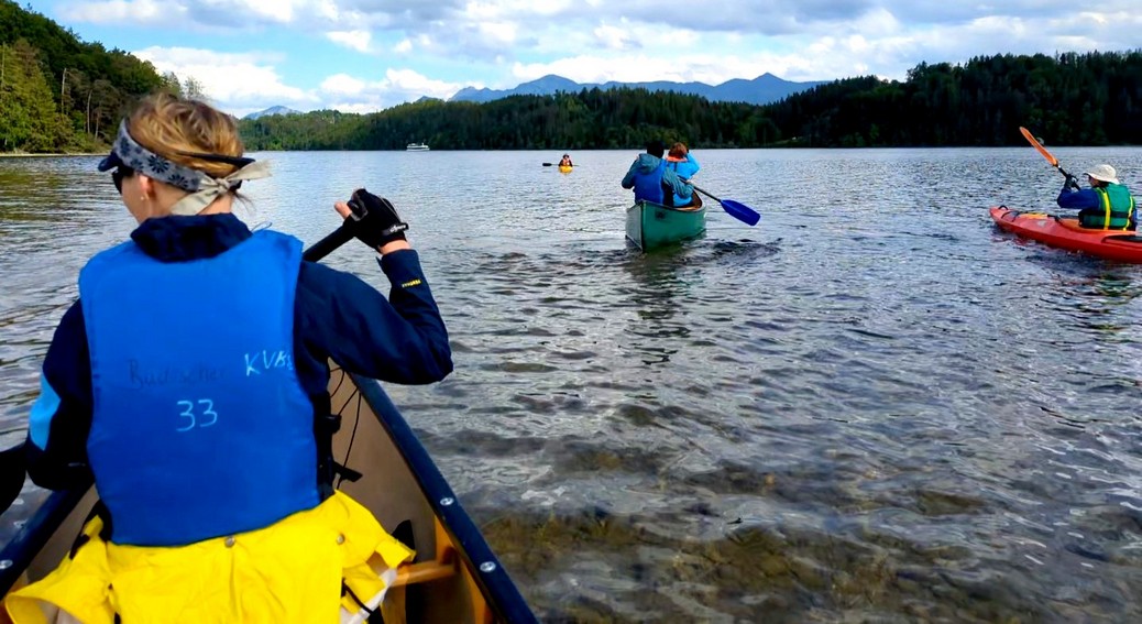 Zurück an der Unterkunft, gab es drei Verrückte, die unbedingt im Staffelsee bei unter 16 Grad Celsius baden mussten. Was das angeht, bin ich jedoch ein bekennendes Weichei, hatte aber dennoch Hochachtung. Dann ging es für den ein oder anderen noch zum Paddeln. Boote hatte man ja schließlich auch mitgenommen. Es fehlte also an nichts.