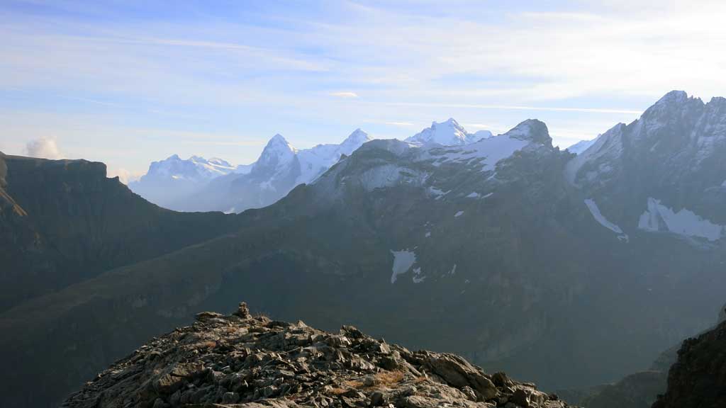 Berühmtes-Dreigestirn-mit-Wetterhorn,-Gspaltenhorn-rechts-im-Vordergrund 16. November 2014 1024 × 576 Blümlisalphorn Überschreitung