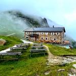 Kurz vor der Hütte jedoch: Ha, schon wieder Regen! Wir wurden nass. Aber egal. Auf der Adolf Pichler Hütte waren wir die einzigen Übernachtungsgäste. Im Trockenraum bollerte ein Radiator, hier wollte man bleiben. In der Gaststube war’s aber auch gemütlich. Marillenstrudel und Kaffee stimmen uns schnell versöhnlich. So, dass sich später – in der nächsten Regenpause – Freiwillige fanden, um nackt in den eiskalten Bergsee zu hüpfen.
