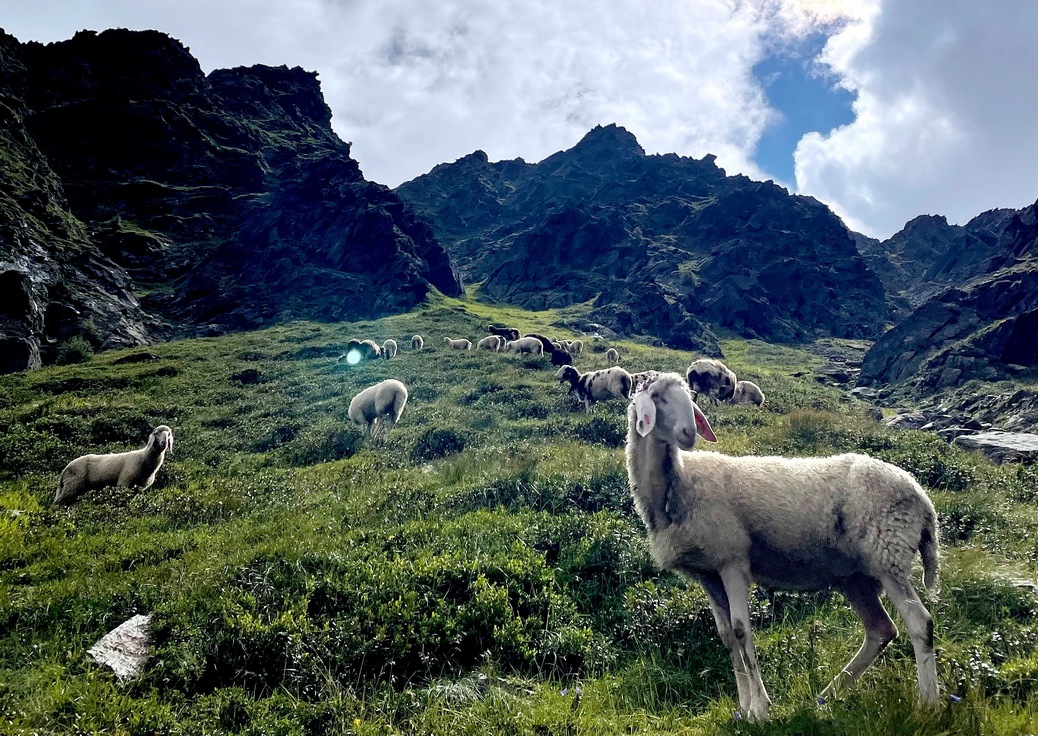 Wir rissen uns die Regenklamotten vom Leib, machten endlich Pause, vesperten und genossen die wohltuenden Sonnenstrahlen im Gesicht. Übermütig packten wir die Regensachen ein und machen uns an den Abstieg, hinweg über Geröllfelder.
