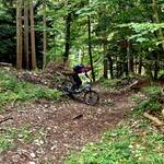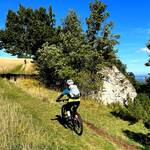 Prägendes Gestein der Alb ist der Kalkstein, was zur Folge hat, dass es bei Nässe rutschig wird. Das und die eine oder andere Wurzel prägten die Aufgaben, die die fahrenden Teilnehmer_innen zu bewältigen hatten. Die Tour war als Streckentour geplant und so führte uns am ersten Tag der Weg über den Lochen nach Wehingen, wobei wir noch die ersten vier Tausender mit Rainen, Montschenloch, Bohl und Wandbühl abfuhren.