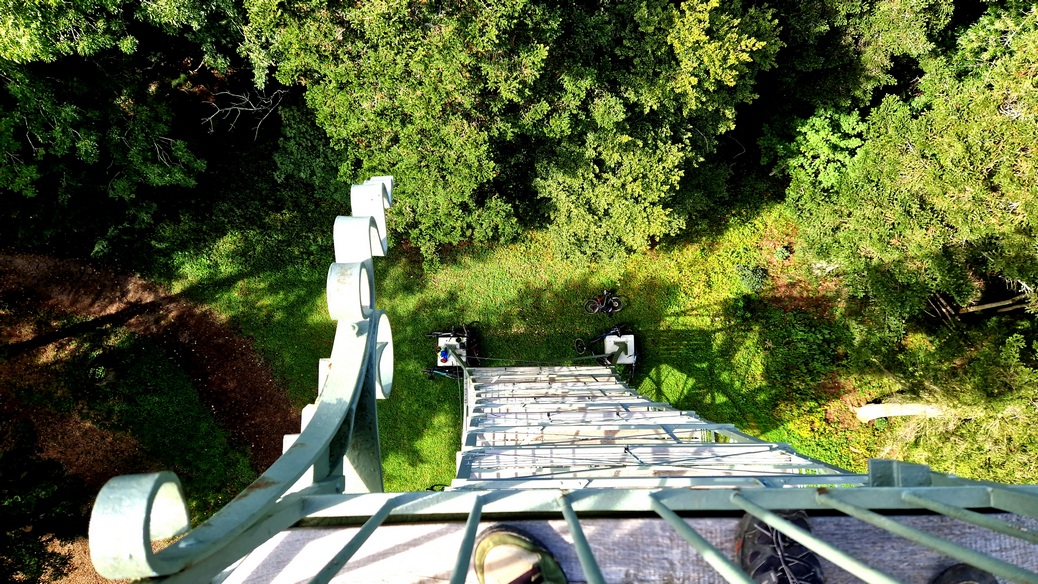 Die ersten drei, Hochwald, Kehlen und Hummelsberg wurden in einer Schleife bewältigt, bevor die sacksteile Auffahrt von Gosheim zum König der Tausender und höchste Berg der Alb, dem Lemberg, unter die Stollenreifen genommen wurde. Hier schaffen es nur die wildesten Hunde (und die Elektroradlerin) ohne Absteigen. Bekanntlich wird der 1.015er noch durch einen 33m Turm gekrönt, von dem aus eine herrliche Aussicht über die ganze West-Alb möglich ist.